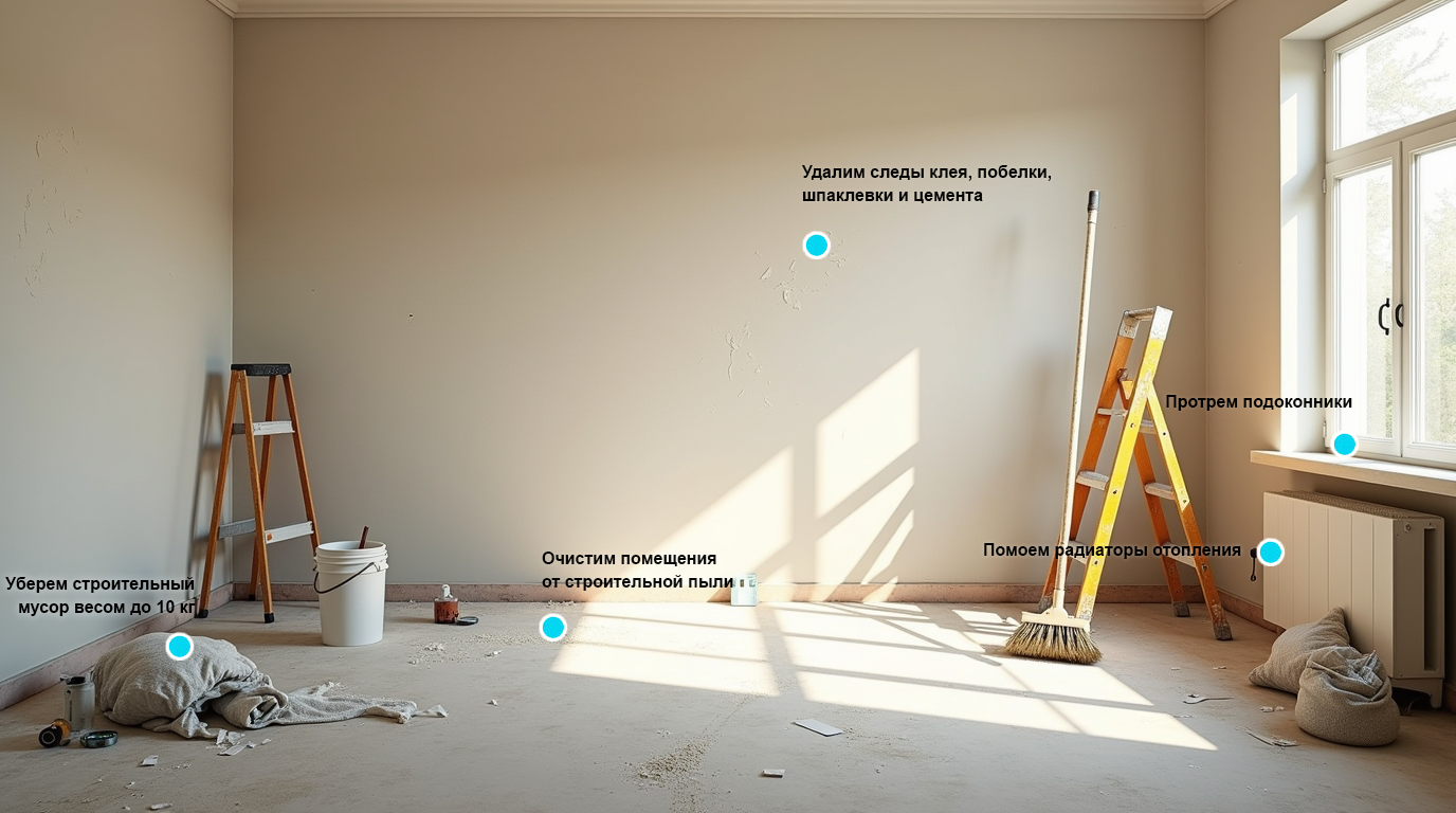 Уборка после ремонта комплексный процесс. Для идеального результата мы проводим индивидуальную оценку плана работ.