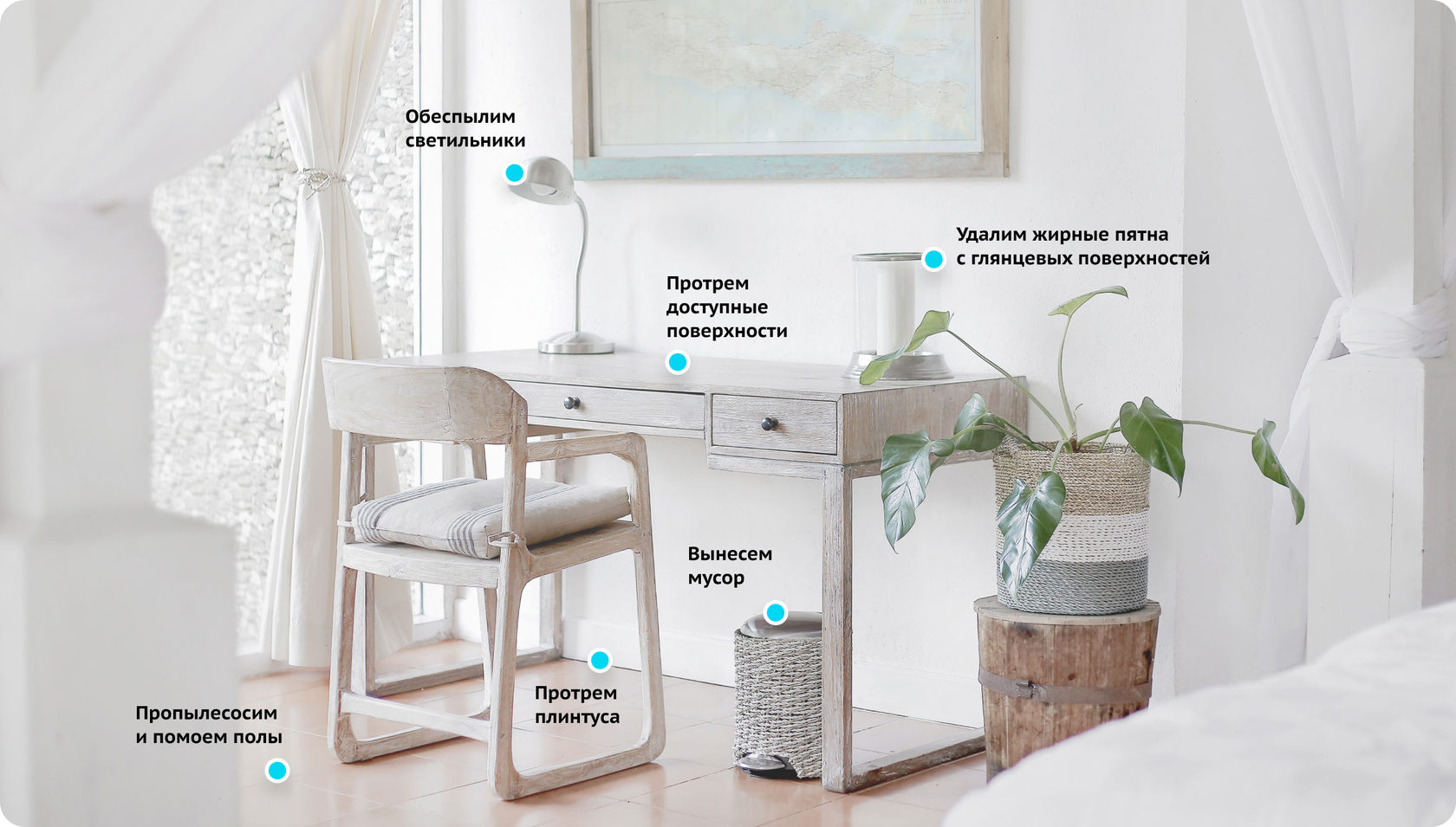 Уборка длится от 2 до 4 часов и для идеальной частоты работа содержит чек-лист из 24 пунктов.